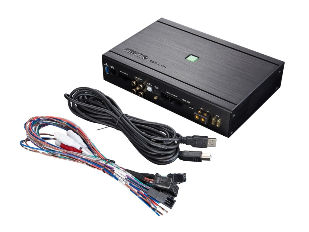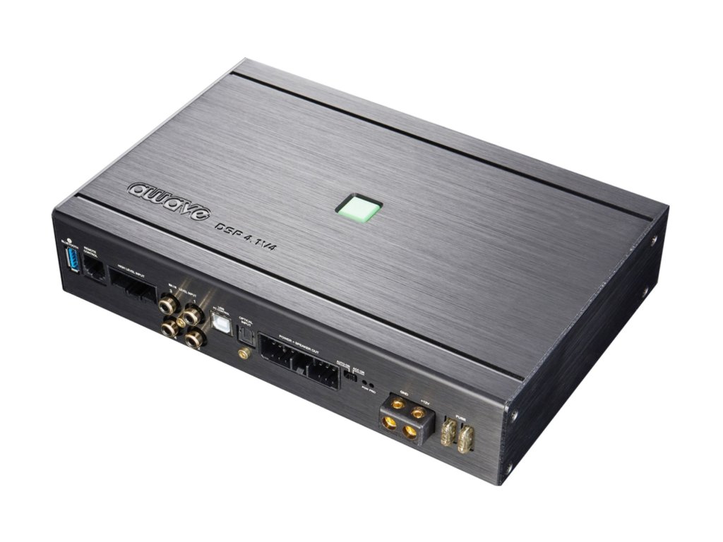 Awave DSP-4.1v4 je pětkanálový zesilovač s integrovaným DSP procesorem, který kombinuje kvalitní zvuk, propracovaný software DSP procesoru a snadnou integraci na tovární systémy. Zesilovač nabízí vysoký výkon 4 x 75 + 1 x 200 W RMS a bohatou konektivitu. Ta zahrnuje 6 vysokoúrovňových vstupů pro pohodlné připojení na originální autorádia, 2 RCA vstupy nebo optický a koaxiální vstup. Díky 2 RCA konektorům na výstupu a 6 zpracovatelnými kanály DSP procesoru lze připojit a ovládat další zesilovač. DSP procesor disponuje vysoce kvalitním čipem ADAU, převodníky signálu AKM a vzorkovací frekvencí 192 kHz. V programu DSP procesoru lze intuitivně nastavit gain, časové korekce, pásmové propusti, filtry, 31pásmový parametrický ekvalizér a další důležité funkce. K zesilovači je také možné dokoupit dálkový ovladač pro nastavení celkové hlasitosti, hlasitosti subwooferu a výběru presetu. Zesilovač je kompatibilní s Hi-res soubory díky rozšířené frekvenční odezvě. Moderní digitální platforma zajišťuje vysokou 84% účinnost, dostačující výkon pro středně pokročilé reproduktory a velmi kompaktní rozměry.
