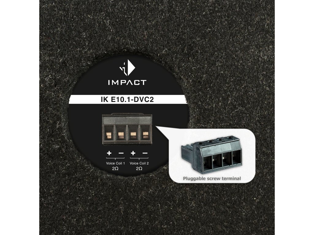 IK E10.1 je vybaven 250mm šasi IK W10 . Jeho extrémně tuhý kužel vyrobený z ručně nabíraných papírových vláken v kombinaci s odolným systémem měničů snadno a bez kompresních efektů přeměňuje výkon zesilovače na spoustu akustického tlaku – a zároveň zvukově vyniká jemnými rytmy.