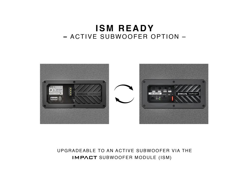 - Volitelný aktivní subwoofer – lze jej přeměnit na aktivní subwoofer výměnou terminálu za subwooferový modul IMPACT (ISM)