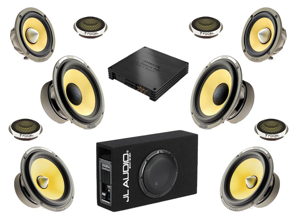 Audiosystém obsahující reproduktory z nejvyšších řad renomovaných značek (FOCAL,BRAX HELIX,JL AUDIO) poháněné špičkovými německými zesilovači s DSP, doplněný o pečlivě vybraný subwoofer na míru vozu. Celý systém pak naladí náš odborník s mnohaletými zkušenostmi v oboru a mezinárodních soutěží v ozvučení automobilu.