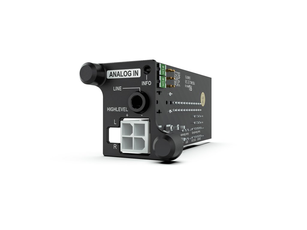 Rozšiřující karta 2.0 ANALOG IN rozšiřuje váš DSP nebo DSP zesilovač o dva analogové vstupní kanály – ideální pro komplexní aplikační scénáře, připojení dalších zdrojů signálu, jako je televizor nebo chytrý telefon, nebo integraci do prémiových zvukových systémů OEM. Ať už se jedná o signál vysoké nebo nízké úrovně: tento modul poskytuje správné rozhraní a nabízí flexibilní použití a plnou konfiguraci pomocí DSP PC-Tool.